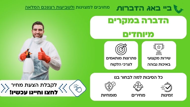 המורכבות והאתגרים המיוחדים בטיפולי הדברה במקרים מיוחדים מדגישים את החשיבות הקריטית של פנייה לאיש מקצוע מוסמך. שירותי הדברה מקצועיים מבטיחים לא רק את יעילות הטיפול, אלא גם את בטיחות המבנה, הסביבה והאנשים. המומחיות הנדרשת בכל אחד מהתחומים המיוחדים – ממבנים היסטוריים ועד מוסדות רפואיים – מחייבת ידע מעמיק, ניסיון רב וגישה מותאמת אישית. רק מדביר מקצועי יכול להעריך נכונה את המצב, לבחור בשיטות הטיפול המתאימות ביותר, ולבצע את העבודה תוך הקפדה על כל התקנים והדרישות הרגולטוריות. השקעה בשירותי הדברה מקצועיים היא הדרך הבטוחה והיעילה ביותר להבטיח תוצאות מיטביות לטווח ארוך.
